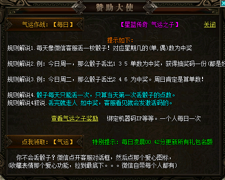 3.骰子福利<每天互动奖励>